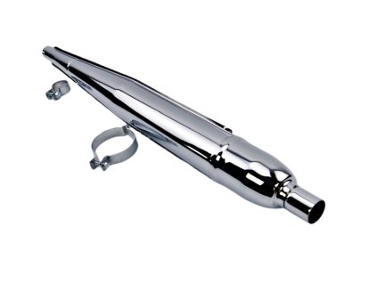 Náhradní tlumič výfuku s objímkou, je určený pro české veterány Jawa 50 typ 20, 21 a 23 mustang.