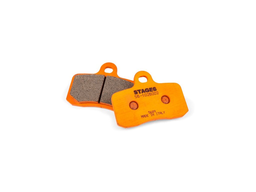 Závodní destičky Stage6 pro kotoučové brzdy jsou vyrobeny z kvalitní sinterované směsi s přímou odezvou i při rychlé jízdě a v extrémních podmínkách. Jsou vysoce tepelně odolné a vhodné pro intenzivní použití.