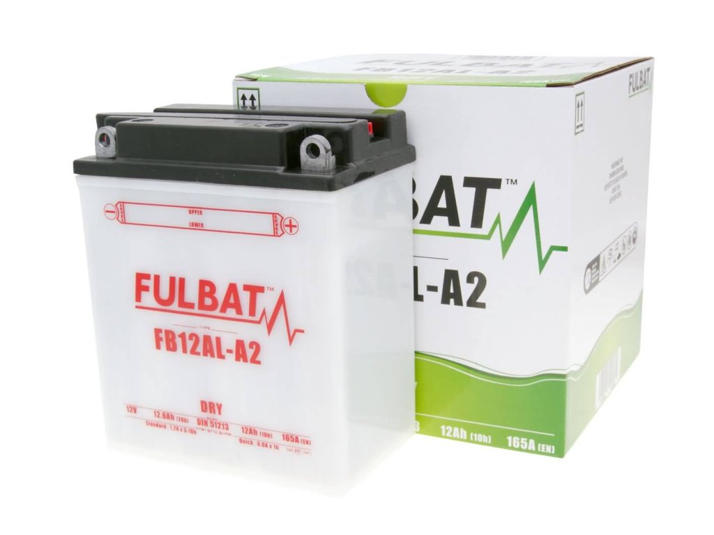 12V baterie od firmy Fulbat. Rozměry baterky jsou 134x80x160mm. hmotnost baterky s kyselinou je 3,9kg. Baterie má kapacitu 12Ah. Lze použít jako alternativa za baterie YUASA YB12AL-A2, Varta 51213, Fiamm 6Y3PS, Exide EB12AL-A2, MF CB12AL-A2, MF 12AL-A2Doplňkové parametry