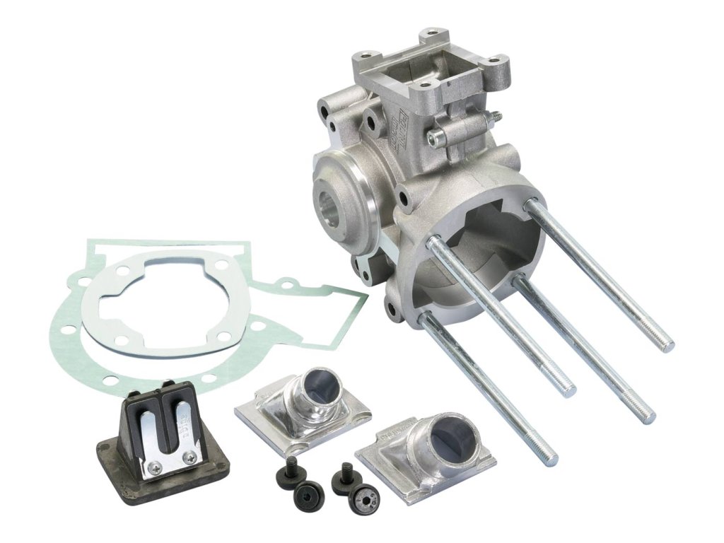 Kliková skříň TPR Factory kompatibilní s motory Minarelli AM6 používanými v Aprilii, Betě a Peugeotu. Má vylepšené sání a je lehčí než standard.