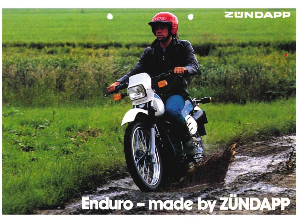 Originální prospekt Zündapp Enduro, nový, orazítkovaný, děrovaný, 2 strany, formát DIN A4, barevný.