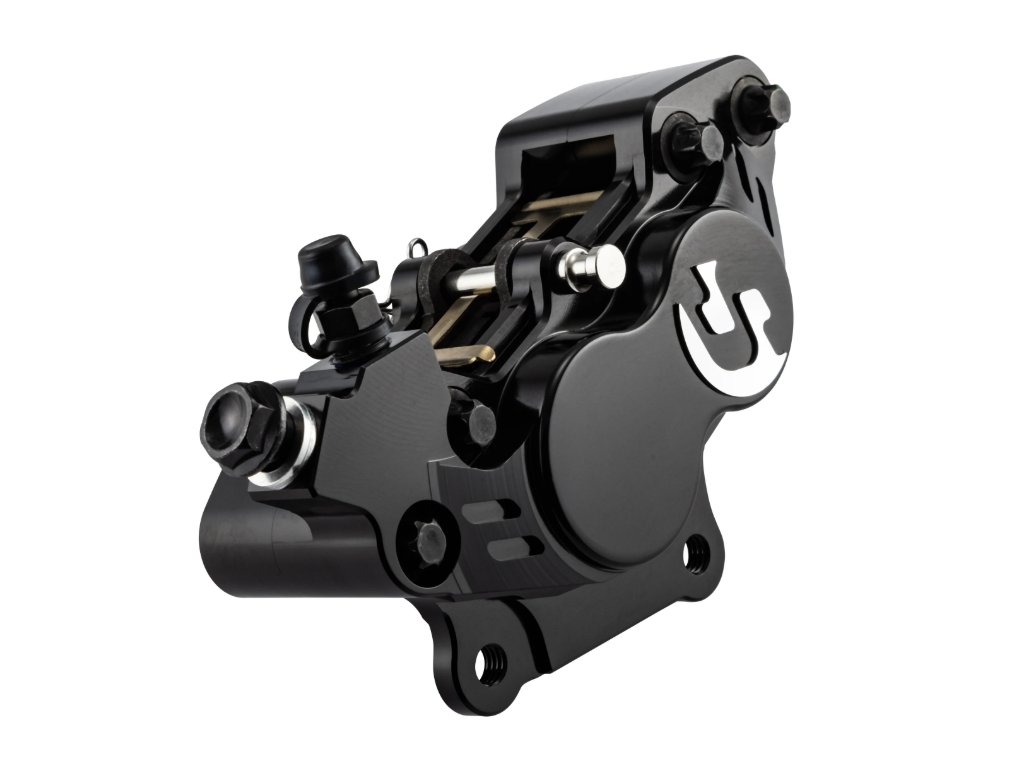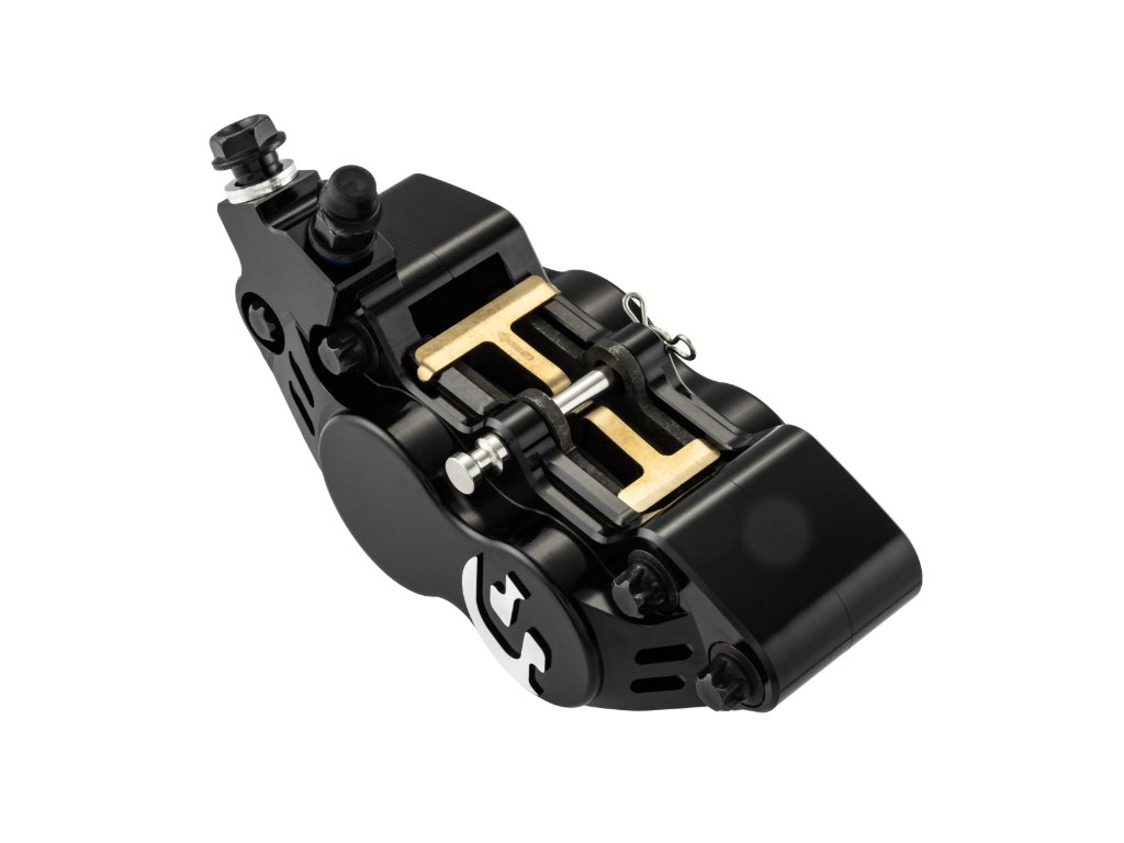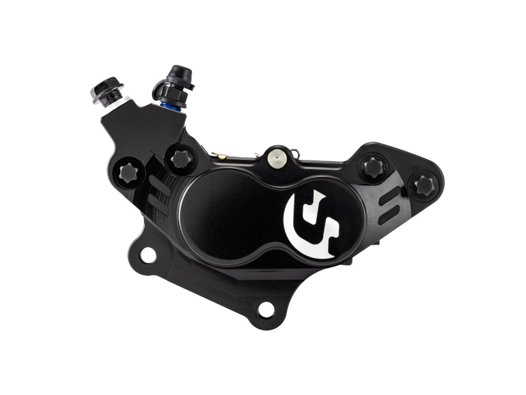 Brzdič je CNC frézovaný z hliníku a osazen dvěma pístky o průměru 34 mm a dvěma o průměru 30 mm, díky čemuž je optimalizován hydraulický převod a dosaženo znatelně lepšího brzdného účinku. Ve spolupráci se širokými brzdovými destičkami GALFER nabízí větší kontaktní plochu, stabilní záběr bez naklánění destiček a efektivnější odvod tepla. Výsledkem je delší životnost destiček i samotného brzdiče – a to i při dlouhodobém zatížení.