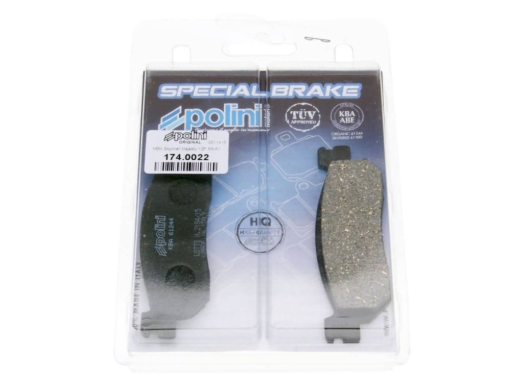 Brzdové destičky Polini jsou zárukou vysoké kvality zpracování a špičkového brzdného účinku. Organická směs se snadno dávkuje a chrání brzdový kotouč. Vhodné jako náhrada originálních destiček za velmi příznivou cenu.Doplňkové parametry