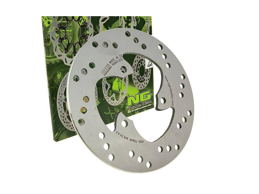 Brzdový kotouč od známého španělského výrobce NG Brake Disc, který už více než 20 let vyrábí brzdové kotouče pro motocykly, skútry a čtyřkolky. Jako jeden z mála výrobců mají všechny standardní NG kotouče homologované a díky tomu jsou ideální kvalitní náhradou za drahý originální díl. Více než 30 renomovaných evropských a japonských výrobců spolehají na špičkovou kvalitu NG brzdových kotoučů a montují je do nově vyrobených vozidel jako originální díl. Kotouč je vhodný pro skútry Honda PCX 125 a 150 od roku 2022 a Hondu SH 125 od roku 2020. Průměr kotouče: 220mm / Průměr umístění děr: 105mm / Tloušťka kotouče: 3,5mm / Počet děr: 5 / Vnitřní průměr díry pro šroub: 10,5mm.