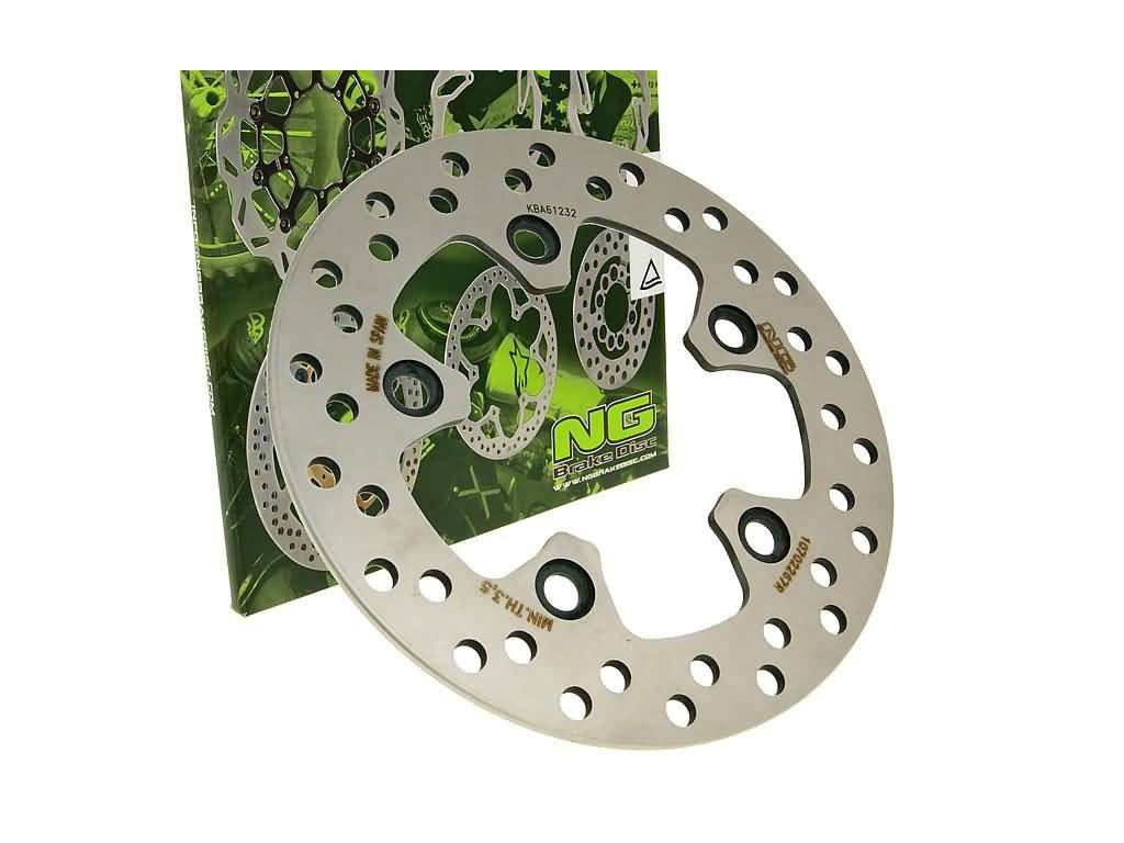 Brzdový kotouč od známého španělského výrobce NG Brake Disc, který už více než 20 let vyrábí brzdové kotouče pro motocykly, skútry a čtyřkolky. Jako jeden z mála výrobců mají všechny standardní NG kotouče homologované a díky tomu jsou ideální kvalitní náhradou za drahý originální díl. Více než 30 renomovaných evropských a japonských výrobců spolehají na špičkovou kvalitu NG brzdových kotoučů a montují je do nově vyrobených vozidel jako originální díl. Pasuje i na Sym Jet Euro X 50 r.v. 06-09 (přední) / Red Devil 50 r.v. 07 (přední) / Jet Euro 100 r.v. 07-08 (přední). Homologace: Ano / Průměr kotouče: 190mm / Průměr umístění děr: 80mm / Tloušťka kotouče: 4,0mm / Počet děr: 5 / Vnitřní průměr díry pro šroub: 10,5mm / Typ: StandardDoplňkové parametry