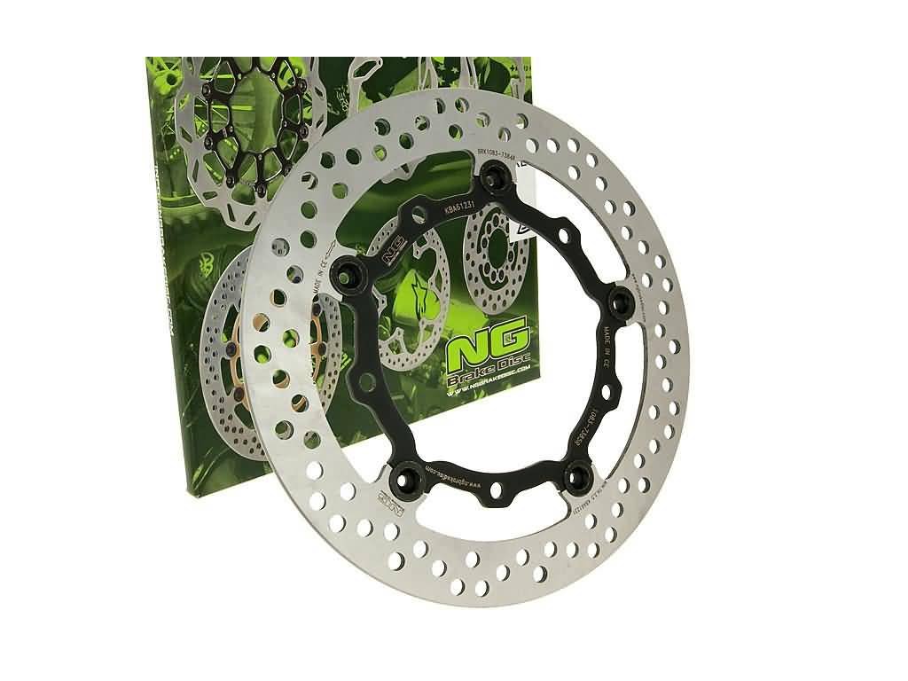 Brzdový kotouč od známého španělského výrobce NG Brake Disc, který už více než 20 let vyrábí brzdové kotouče pro motocykly, skútry a čtyřkolky. Jako jeden z mála výrobců mají všechny standardní NG kotouče homologované a díky tomu jsou ideální kvalitní náhradou za drahý originální díl. Více než 30 renomovaných evropských a japonských výrobců spolehají na špičkovou kvalitu NG brzdových kotoučů a montují je do nově vyrobených vozidel jako originální díl. Pasuje i na Yamaha X-Max 125 r.v. 05-11 (přední) / X-Max 125 I r.v. 05-11 (přední) / X-Max 125 I ABS r.v. 05-11 (přední) / Grand Majesty 250 (Japan) r.v. 04-05 (přední) / X-Max 250 r.v. 05-11 (přední) / X-Max 250 I Black r.v. 05-11 (přední) / X-Max 250 I ABS r.v. 11-12 (přední) / X-Max 250 I Sport r.v. 11-12 (přední) / Majesty 400 r.v. 04-12 (přední) / Majesty 400 ABS r.v. 04-12 (přední) / T-Max 500 r.v. 03-07 (přední) / T-Maz Black Max r.v. 03-07 (přední) / T-Max 535 r.v. 12 (přední) / T-Max 535 ABS r.v. 12 (přední). Homologace: Ano / Průměr kotouče: 267mm / Průměr umístění děr: 132mm / Tloušťka kotouče: 4,0mm / Počet děr: 5 / Vnitřní průměr díry pro šroub: 8,5mm / Typ: Standard plovoucíDoplňkové parametry