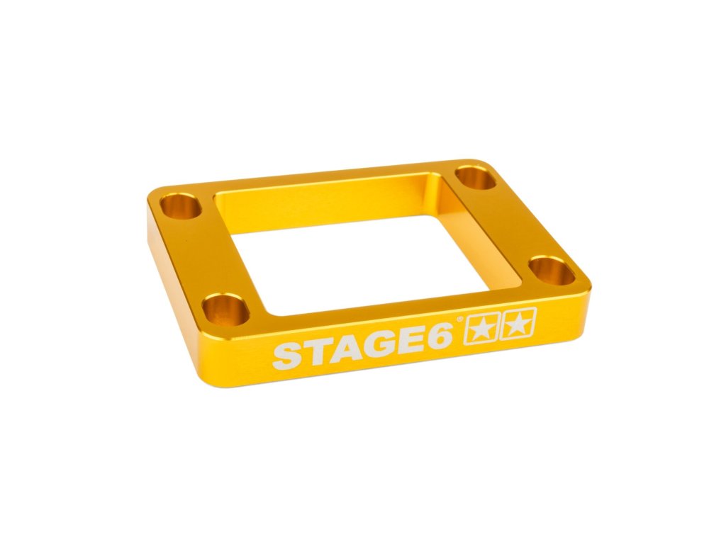 Adaptér Stage6 pro 360° přírubu AM6 a Derbi. Precizní hliník, odolný a přesně pasující. Součástí šrouby a vložka pro vedení kabelu. Oranžová barva.