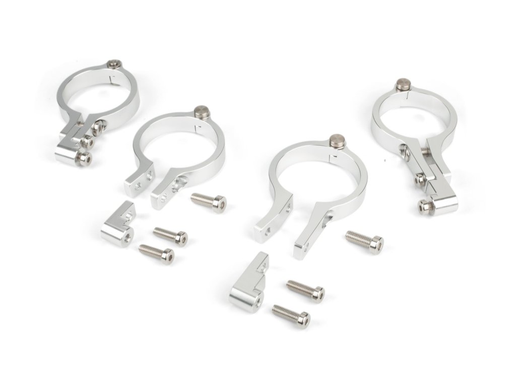 Svorky blatníku jsou náhradní díl pro vidlici Stage6 R/T, který slouží k upevnění předního blatníku. Svorky z šedě eloxovaného hliníku s odsazeným držákem nabízejí univerzální řešení pro montáž různých komponent. Díky otočné ose pasují na kulaté držáky s průměrem 43 mm. Svorky lze také použít obráceně, aby bylo možné z plochého držáku uchytit kulové příslušenství.