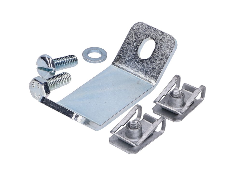 Držák pro stupátko včetně montážního příslušenství (šrouby, plechové matice a podložka), vhodné pro Piaggio Vespa Ciao Mofas a Mopeds.