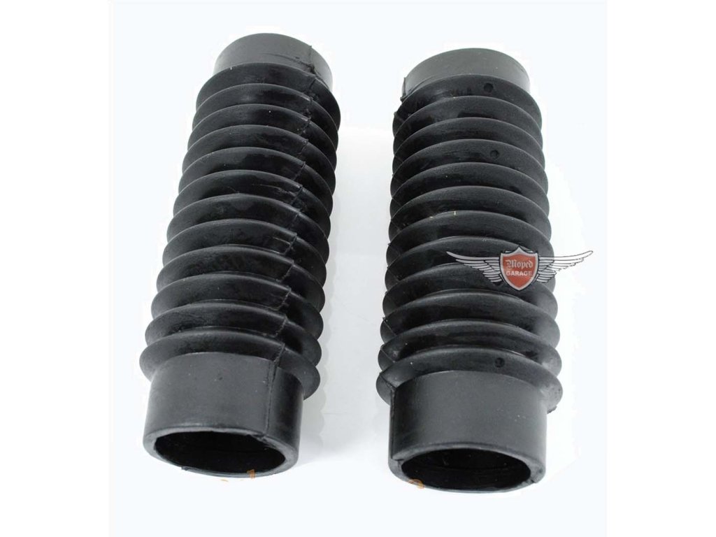 Černé harmonikové manžety pro Kreidler Florett RS, RMC, LF, LH a RM chrání trubky vidlice, prodlužují životnost těsnění a podvozku a snadno se montují.