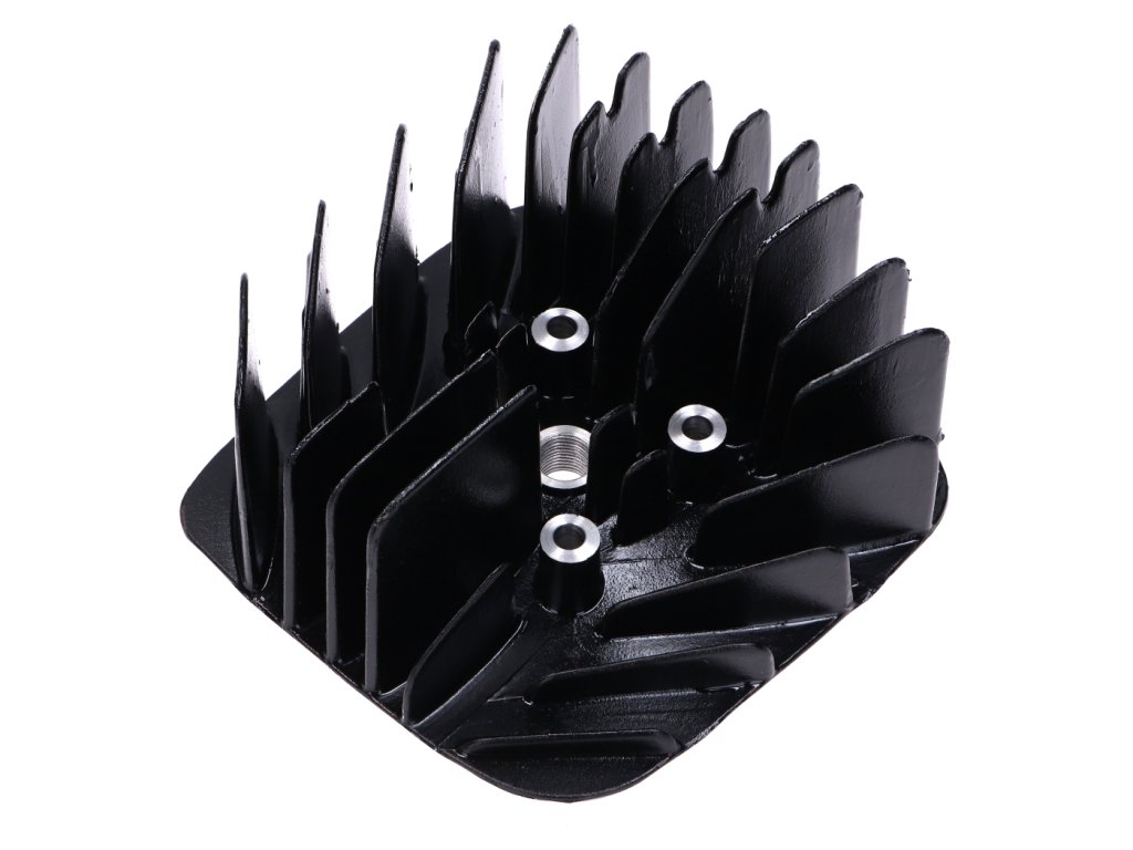 Hlava válce je v matně černé povrchové úpravě a je určena pro vrtání 43 mm při rozteči svorníků 45 mm. Je kompatibilní s modely Yamaha DT 50 MX a RD Mokick. Konstrukce zajišťuje přesné usazení a optimální těsnění pro zachování výkonu motoru. Díky robustním materiálům a přesné výrobě je zajištěna vysoká odolnost proti tepelnému a mechanickému namáhání. Tato hlava válce je ideální pro výměnu nebo optimalizaci výkonu vašeho vzduchem chlazeného motoru 50 ccm. |