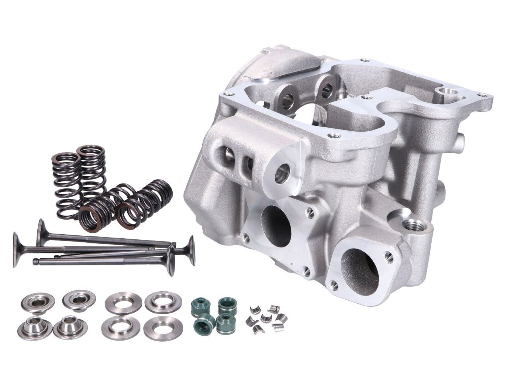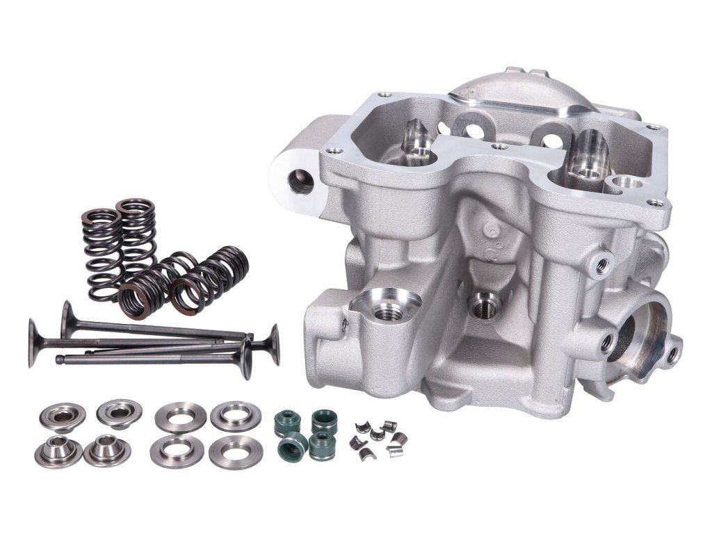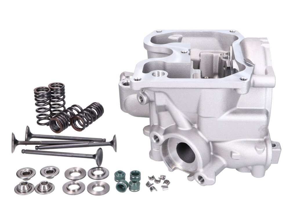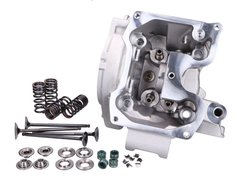 Náhradní hlava válce (4ventilová) Naraku se spalovací komorou 55mm. Hlava je s ventily (19mm výfukové a 22mm sací). Vhodné pro stroje Yamaha X-Max, YZF, WR 125 a další stroje 125ccm s motory YI-3 OHC. Originální vahadla lze použít k této hlavě. Obsah: hlava válce, ventily, pružiny, gufera a drobné příslušenství.Doplňkové parametry