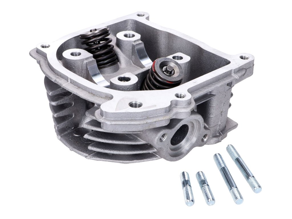 Kompletní hlava válce pro motor 50 cm3. Na rozdíl od mnoha nabízených hlav válců je tato dodávána kompletní. To znamená: ventily, ventilové pružiny, gufera ventilů atd. Hlava válců je tak připravena k montáži a není již nutná složitá výměna a broušení ventilů spolu s potřebným speciálním nářadím.