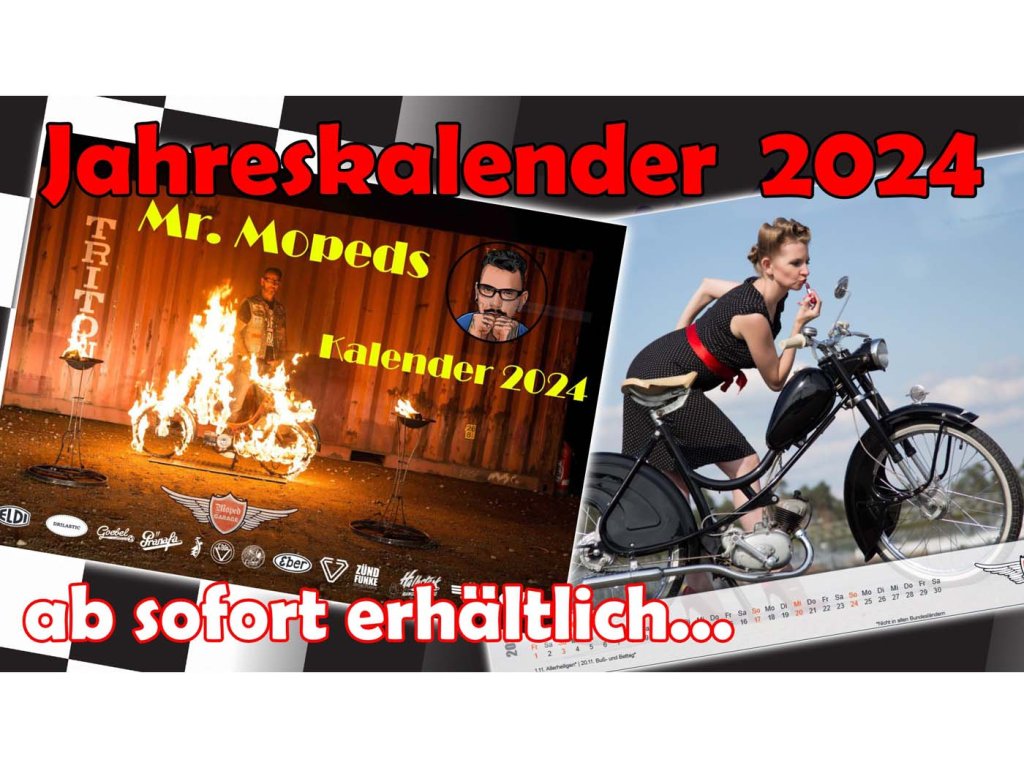 Kalendář Moped na rok 2024 s 13 různými motivy.