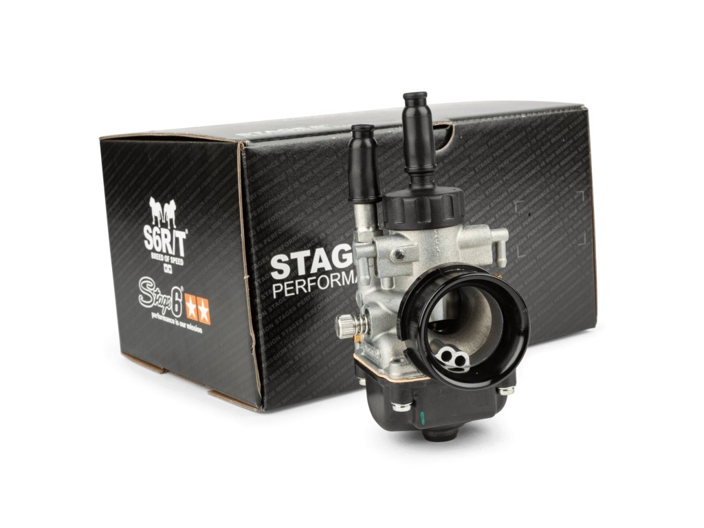 Dell‘Orto karburátor od Stage6 pro 50 ccm skútry, řadičky a Mofa. Při úpravách výkonu je vhodné nahradit originální karburátor větším, aby nové nastavení bylo optimálně podpořeno a bylo dosaženo lepší akcelerace a vyšší maximální rychlosti.