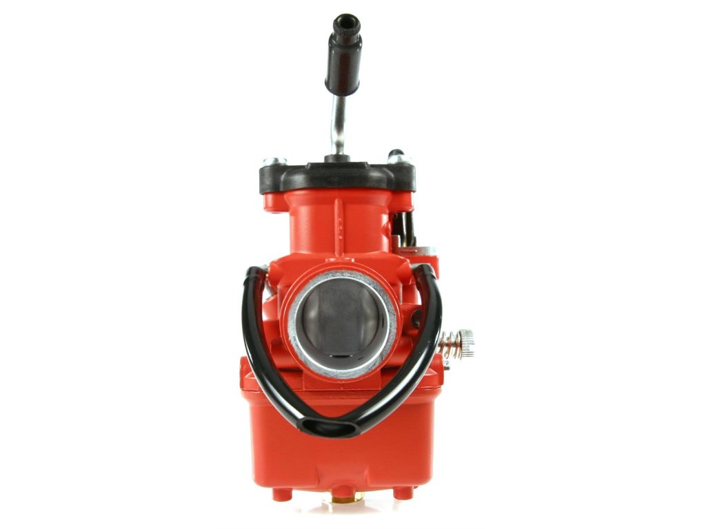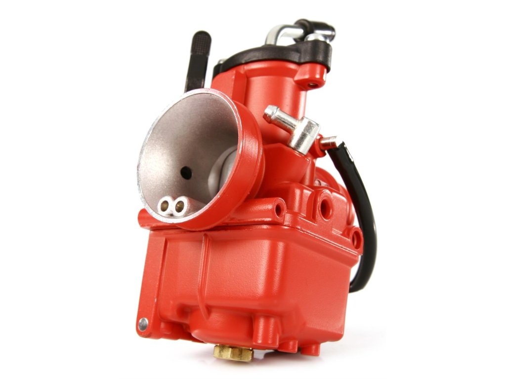 Tuningový karburátor DellOrto VHST 28BS "Red Edition" je technicky vyspělý karburátor s plochým posuvným šoupátkem, to je podstatně lepší než klasické karburátory. Vzhledem k rovnému okraji ploch je možné dosáhnout hladkého průchodu vzduchu a tím zajistit vynikající naplnění válce. Tímto je dosaženo vyššího výkonu a účinnosti motoru. Příruba k motoru: 36mm, příruba k filtru: 49mm. Číslo DellOrto: 09381.