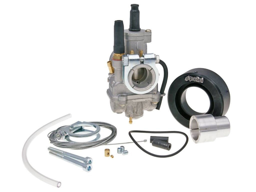 Karburátor CP od Polini je kompletně nový typ karburátoru vyvinutý přímo v Itálii v továrně Polini, kde se také celý vyrábí. Je to zárukou maximální kvality a preciznosti ve výrobě. Made in Italy. Je k dostání ve více variantách pro různé použití. Sytič buďto na páčku přímo na karburátoru nebo s vývodem na lanko. Hlavní výhodou je především vyladěný difuzor sání, který je vystředěný a optimalizovaný pro maximální rychlost průtoku směsi. Momentálně nejlepší karburátor na trhu, který dokáže překonat i DellOrto karburátory. K tomuto karburátoru máme také kompletní sortiment trysek, jehel a také všech náhradních dílů.
