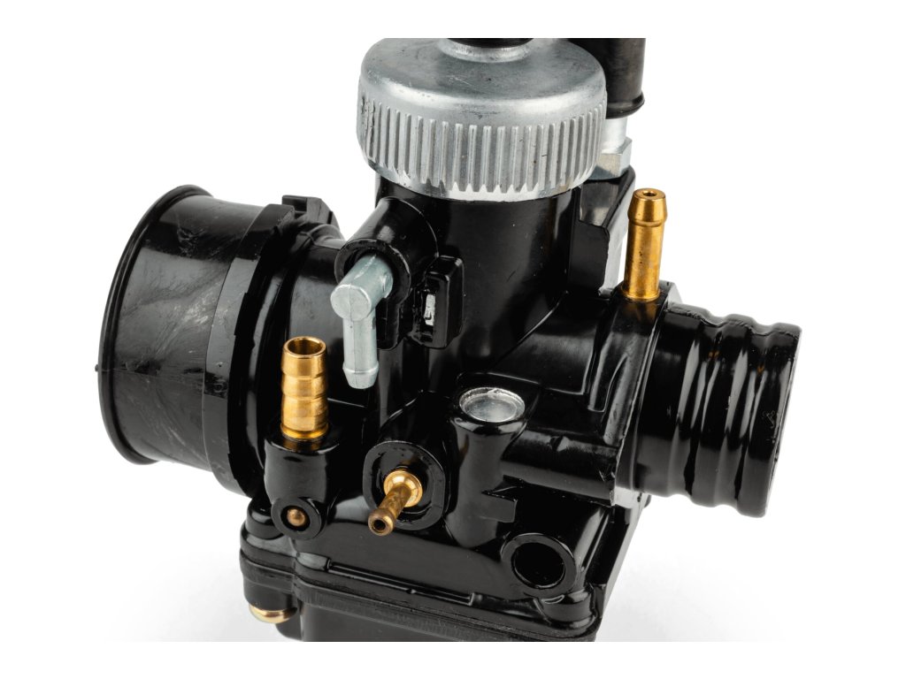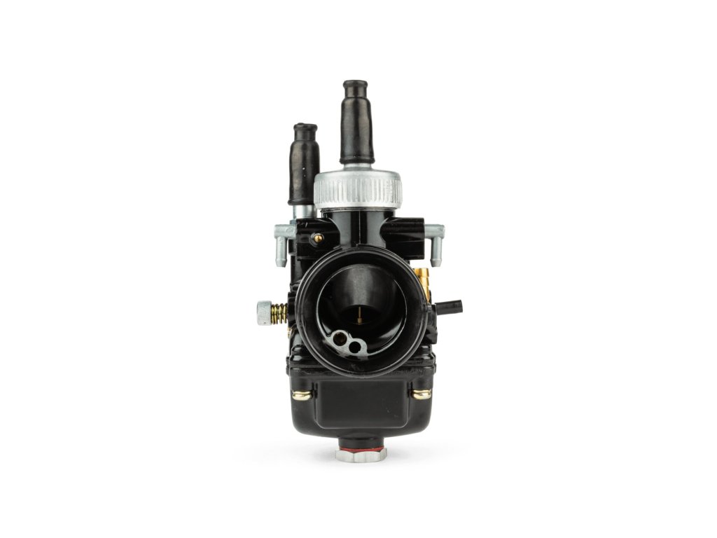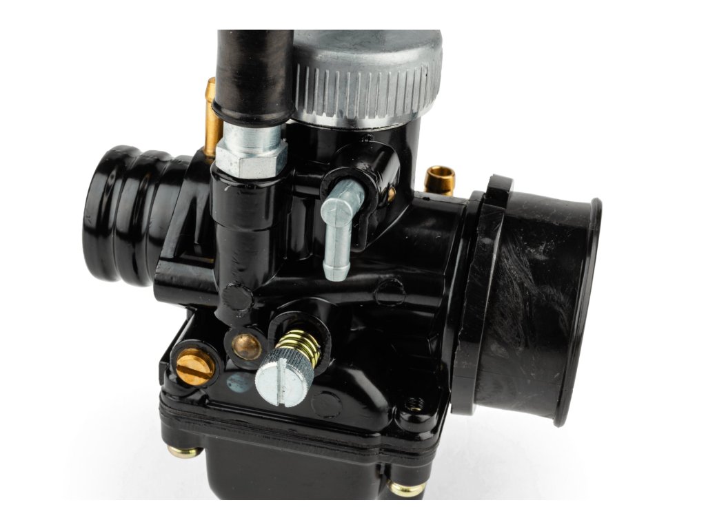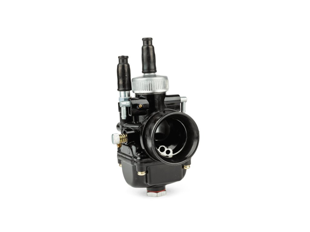 Malým doplňkem je šroub na plovákové komoře, kterým lze rychle vyměnit hlavní trysku karburátoru. Černý lak dělá z karburátoru zaručeně poutavý prvek.