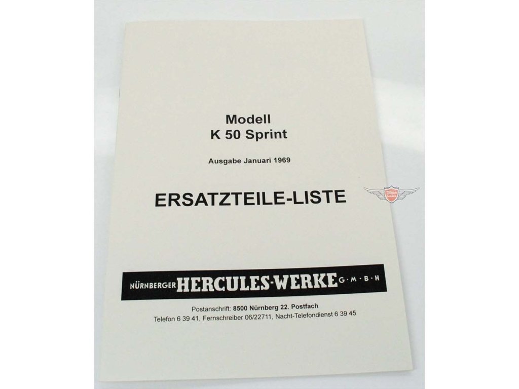 Katalog dílů Hercules K 50 Sprint, vydání 1969, dotisk bez log, DIN A5, 21 s., pro Hercules K 50 Sprint.