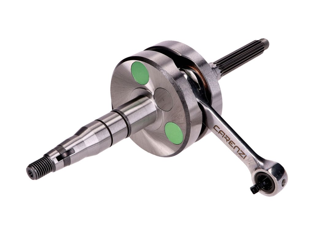 Evolution kliková hřídel od Carenzi s ložiskem se stříbrnou klecí pro Minarelli horizontal AC / LC jako Yamaha Nitro, Aprilia 50 SR, Malaguti 50 F12. Podle výrobce odolná a testovaná až do 16 000 ot/min, 80 mm ojnice a 39,20 mm zdvih. Přesně vyrobeno v Evropě a velmi vhodné pro tuning. Je přiloženo jehlové ložisko pro 10 mm pístní čep.