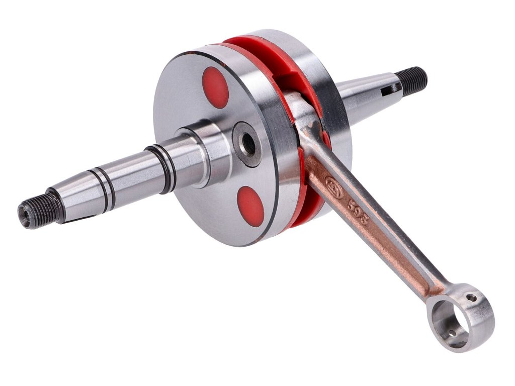Sportovní klikový hřídel DMP s 12mm pístním čepem, je vhodný pro mopedy Puch Maxi s motorem E50 (starý typ). Klikový hřídel používá levé gufero o rozměru 17x40x7 mm a pravé 22x40x7 mm. Levé ložisko je potřeba použít 6203 C3 a pravé 6203 NR.Doplňkové parametry