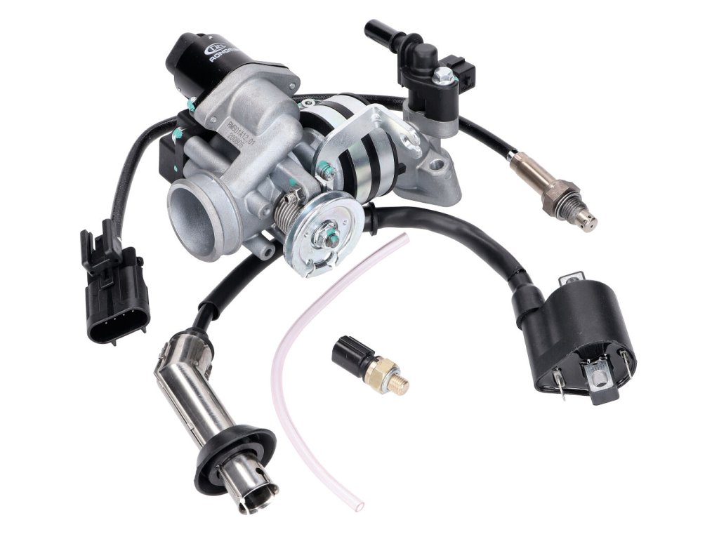 Kompletní vstřikovací systém včetně příruba s vstřikovací tryskou, tělesa škrticí klapky se snímačem škrticí klapky, lambda sondy, teplotního čidla, zapalovací cívky s koncovkou zapalovací svíčky, vhodné pro skútry s motorem 139QMB a vstřikovacím systémem splňujícím emisní normu Euro4 / Euro5.Doplňkové parametry