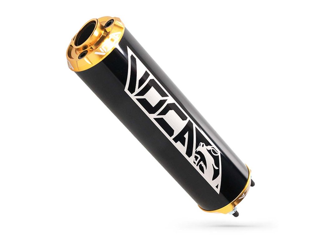 VOCA tlumič výfuku s CNC hliníkovou koncovkou a eloxovaným hliníkovým tělem.
