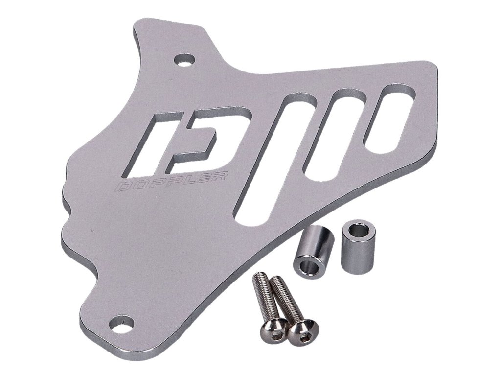 Stříbrná Doppler kryt pastorku z frézovaného hliníku vhodná pro řadičky s motorem Minarelli AM, resp. AM6 repliku z Asie.