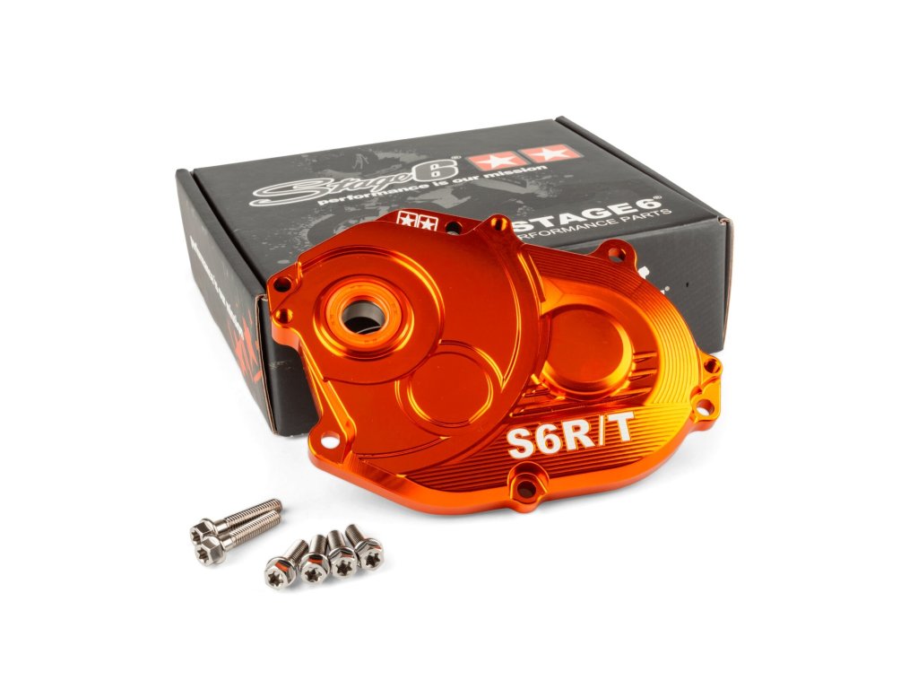 Kryt je CNC vyroben z kvalitní hliníkové slitiny. Ložiska SKF zajišťují maximální výkon a dlouhou životnost. Při vývoji byl kladen důraz na tuhost a solidnost, nikoli na minimální hmotnost. Výsledkem je stabilní kryt s výborným výkonem i v náročných podmínkách. Vyšší tuhost znamená lepší výkon za všech okolností. Oproti OEM krytu převodovky Minarelli má tento kryt dvě jehlová ložiska na sekundárních hřídelích, čímž snižuje tření a zlepšuje výkon i u méně výrazně laděných skútrů. Součástí je také oranžové těsnění hřídele Stage6 R/T FKM pro hnací hřídel.