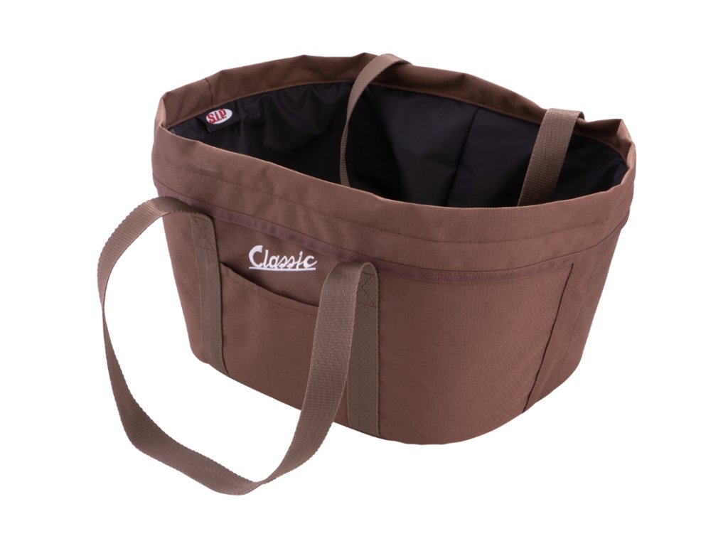 Kufr Classic je stylový košík, který je vyroben z kvalitních materiálů, navíc dodá Vašemu skútru nádherný a originální vzhled. Díky prostorným rozměrům 36 x 32 x 28 cm se do košíku vejde i helma. Praktická vnitřní taška ideálně doplňuje tento stylový košík a má objem 18L. Taška obsahuje malou vnější kapsu a je také možné jí používat na nákupy. Dále v tomto košíku najdete ochranný obal proti dešti a nečistotám. Tento vintage košík je vhodný na všechny skútry, které mají namontovaný zadní nosič (plotnu). Kufr je ideálním doplňkem například pro Vespu, které dodá prvotřídní retro styl.