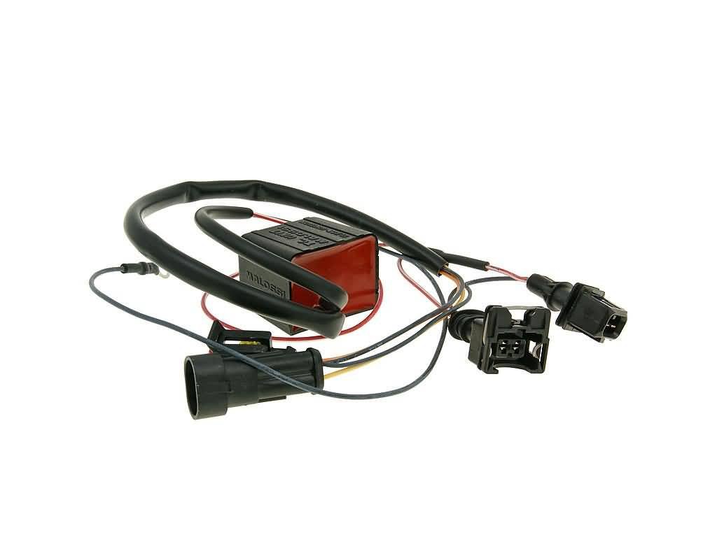 Polini vstřikovací modul pro maxi-skútry plug-and-play s řídicí jednotkou která reguluje palivo a časování vstřiku. Dvě přednastavené mapy pro s nebo bez výfuku Polini.