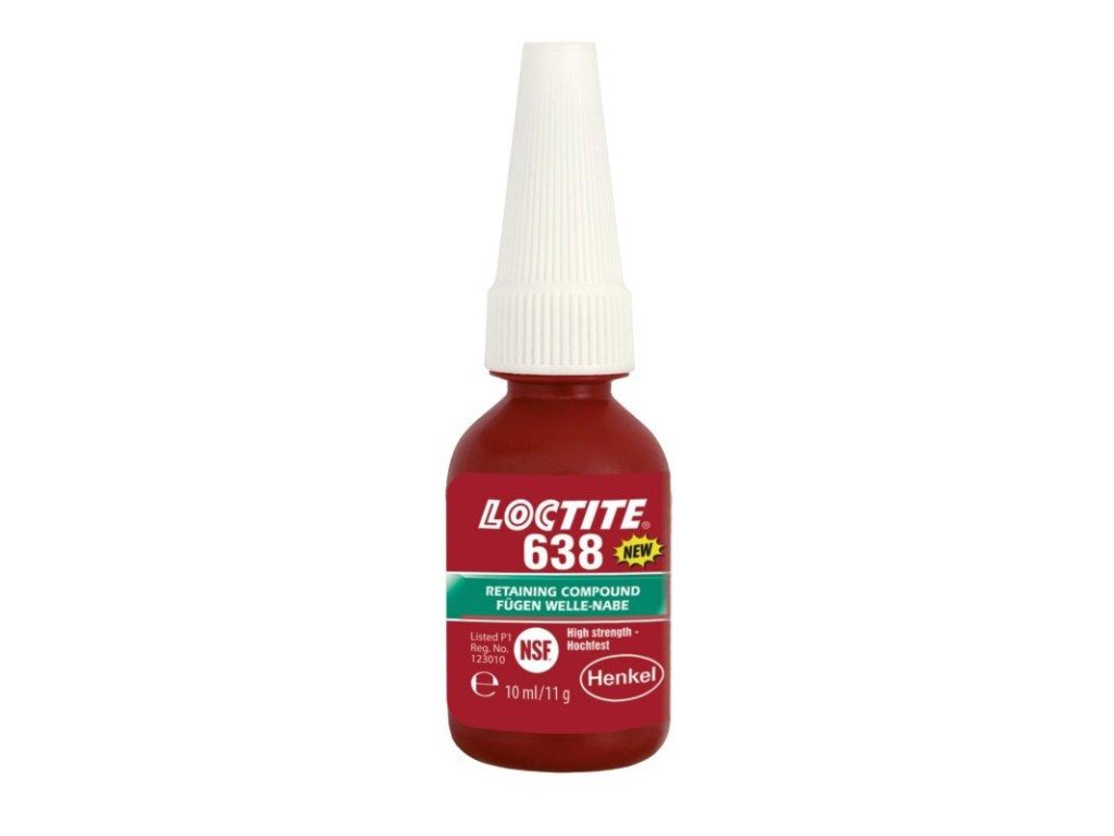 Přípravek Loctite 638 slouží pro upevnění různých částí, vhodný ale je přímo pro u pevnění lícových válcových součástí. Tento upevňovací prostředek dokáže vytvrdnout ve spáře o velikosti až 0,25 mm, přitom zaručuje maximální pevnost a odolnost. K vytvrzení dochází právě ve spáře bez přístupu vzduchu, a to mezi dvěma nejlépe kovovými povrchy. Díky vysoké odolnosti následně nedochází k popraskání, uvolnění či prosakování, především vlivem vibrací a rázů. Konkrétně můžete Loctite 638 využít pro upevnění pouzder a objímek v tělesech a na hřídelích. Maximální provozní teplota je 180 °C.