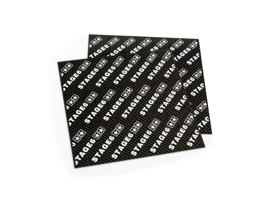 Carbonová membrána 0,35 mm k vystřižení. Uhlíkový list membránových plátků od Stage6. Stage6 0,35 mm uhlíkový lamelový list je ideální řešení, pokud jsou membránové plátky poškozené nebo chcete vyzkoušet jinou tloušťku a změnit chování motoru. Membrány jsou vhodné pro Racing a High-end motory, zlepšují odezvu motoru a tím i zrychlení.
