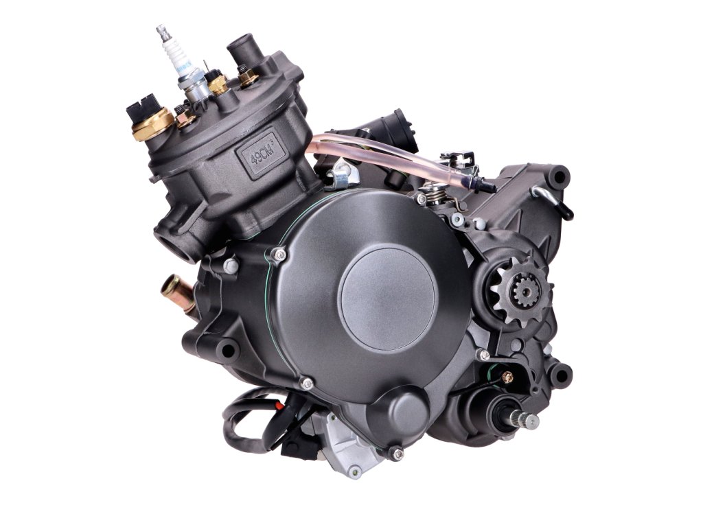 Obsah balení: Motor je dodáván s válcem o objemu 50 ccm, nakopávačkou, startérem, olejovým čerpadlem, krytem olejového čerpadla, řetězovým kolem, krytem řetězového kola, zapalovací svíčkou (NGK BR8ES), teplotním senzorem a zapalovacím systémem s vodotěsným konektorem a čtyřmi vodiči.