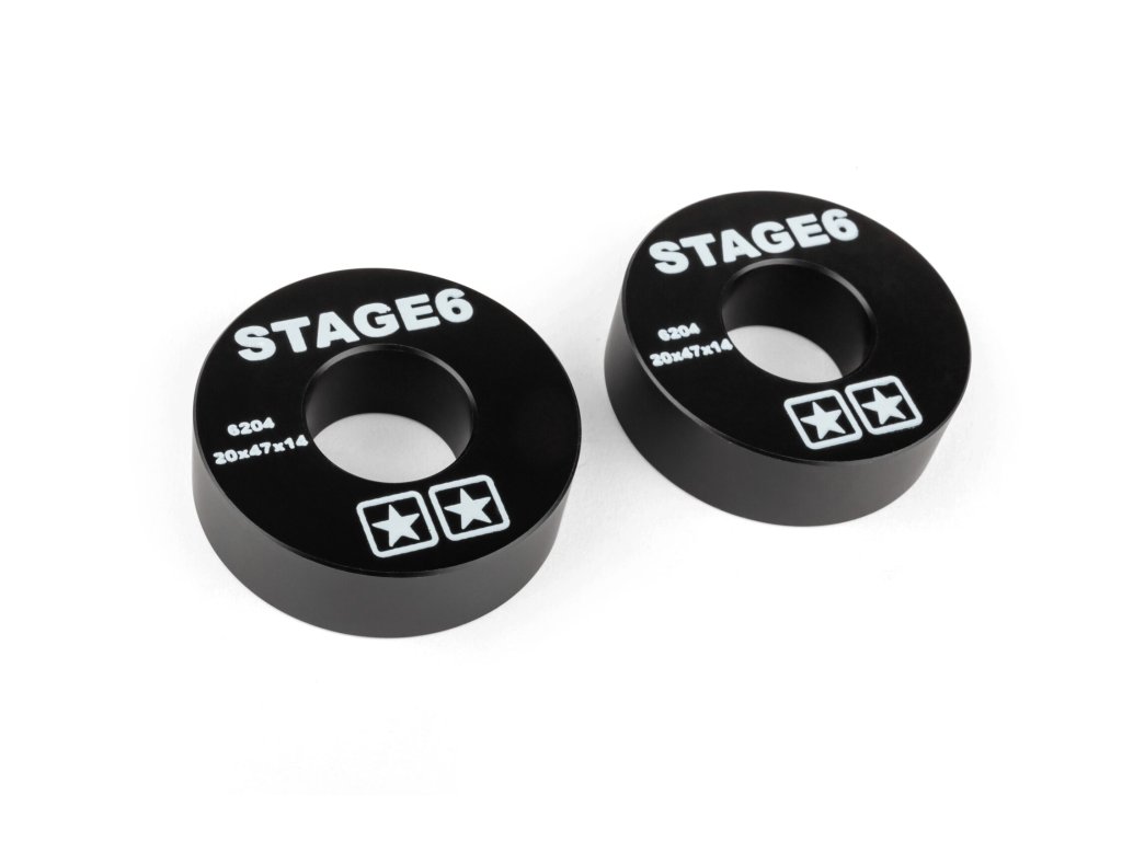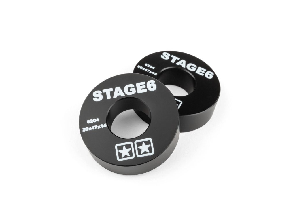 Stage6 náhradní ložisko pro klikovou hřídel je vyrobeno z POM (polyoxymethylen), který se vyznačuje vysokou pevností, tuhostí a nízkým koeficientem tření. Černé náhrady jsou opatřeny bílým logem Stage6, kódem a velikostí ložiska. Prodává se v páru.