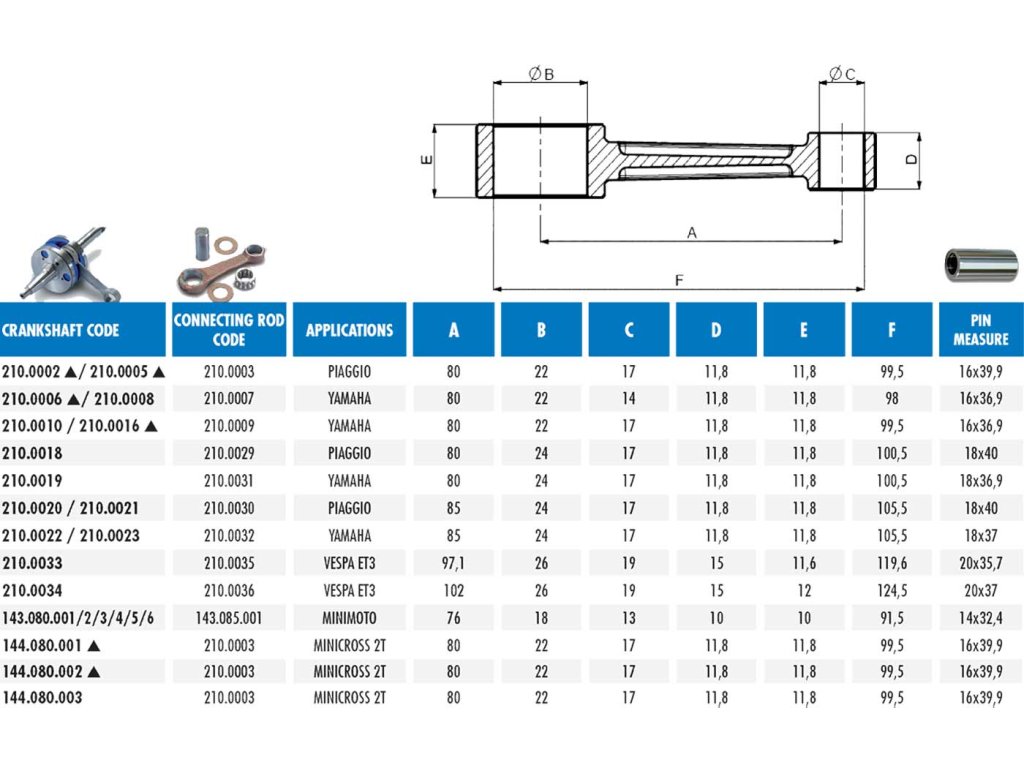 Top kvalitní ojniční sada Polini Big Evolution pro klikový hřídel Polini Evolution 210.0033. Ojnice má zdvih 97,1mm a pístní čep 15mm. Vhodné pro skútry Vespa Primavera 125 ET3 2T.Doplňkové parametry