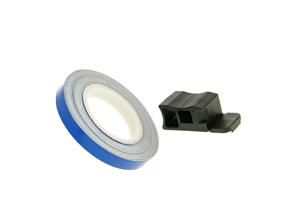 Samolepící pásek na ráfek je v modré barvě, která dodá lepší vzhled Vašemu stroji. Pásek má šířku 7mm a je dlouhý 6m. Role 6m stačí na oblepení 2 ráfků do velikosti až 18 palců.Doplňkové parametry