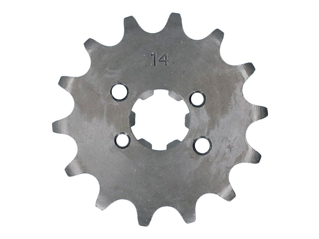 Náhradní pastorek s 14 zuby (typ řetězu 420) je vhodný pro stroje s motory Derbi D50B0, EBE, EBS. Vyšší počet zubů oproti originálu znamená zvýšení maximální rychlosti a o něco menší zrychlení. Méně zubů zlepší zrychlení a snížení maximální rychlost.Doplňkové parametry