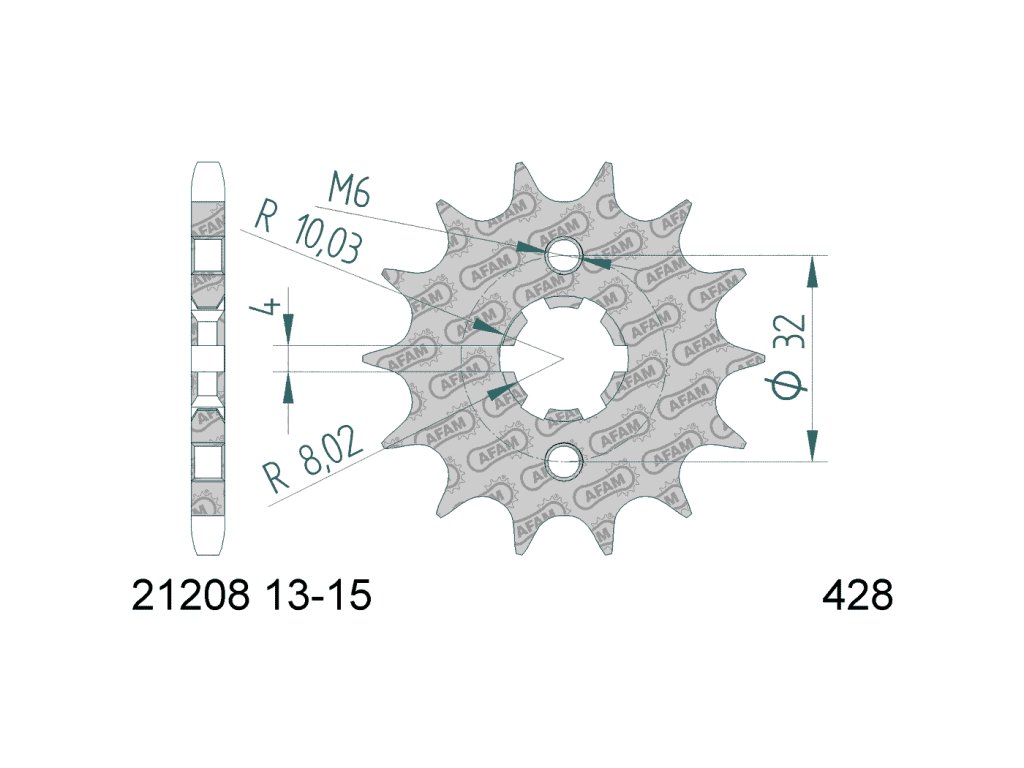 Náhradní pastorek AFAM je ve špičkové kvalitě. Pastorek má 14 zubů (typ řetězu 428) a je vhodný pro motor yamaha 125 LC YI-3 Beta, HM, MH, Rieju.Doplňkové parametry