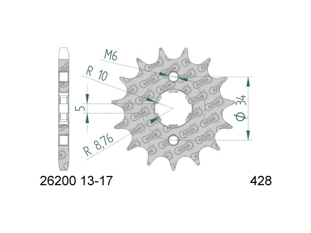 Náhradní pastorek AFAM je ve špičkové kvalitě. Pastorek má 16 zubů (typ řetězu 428) a je vhodný pro stroje Kymco Hipster, Meteorit, Stryker, Quannon.Doplňkové parametry