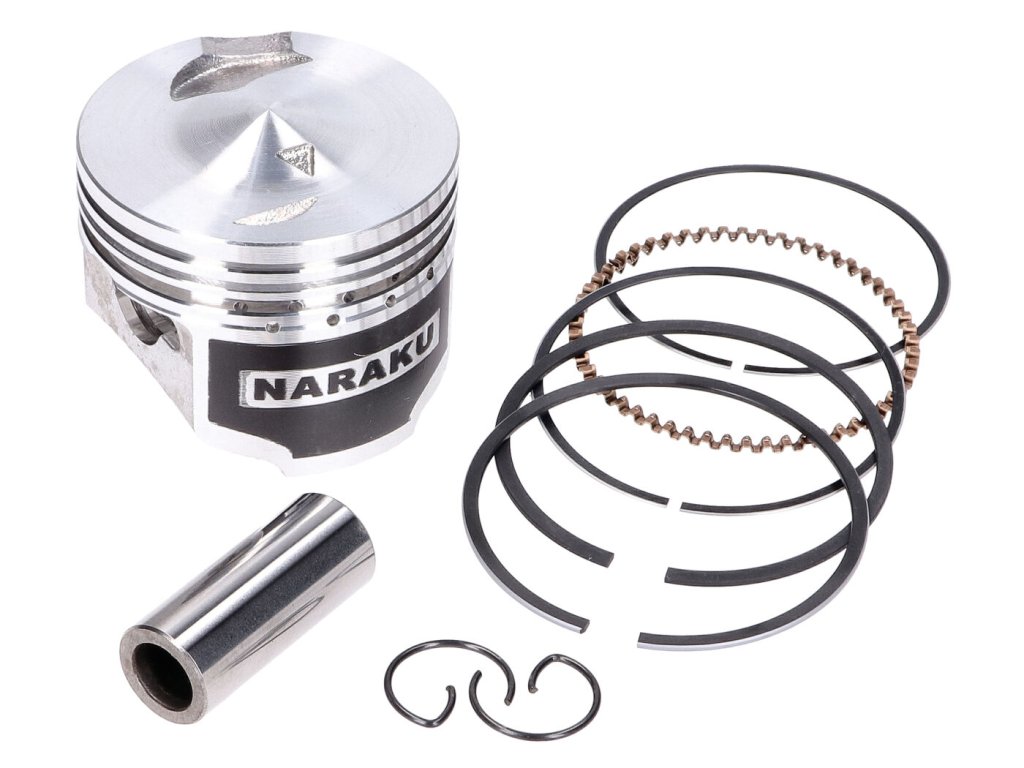 Náhradní vysoce kvalitní pístní sada Naraku V.2 79ccm, je vhodná pro válce Naraku o objemu 79ccm (vrtání 46,95mm). Tato pístní sada je vhodná pro motory Piaggio 4T 2V. Píst je potažen teflonovou vrstvou pro menší tření ve válci. Sada obsahuje píst s kroužky, pístní čep 13x30mm a pojistné kroužky. Kompresní výška pístu: 18mm.Doplňkové parametry