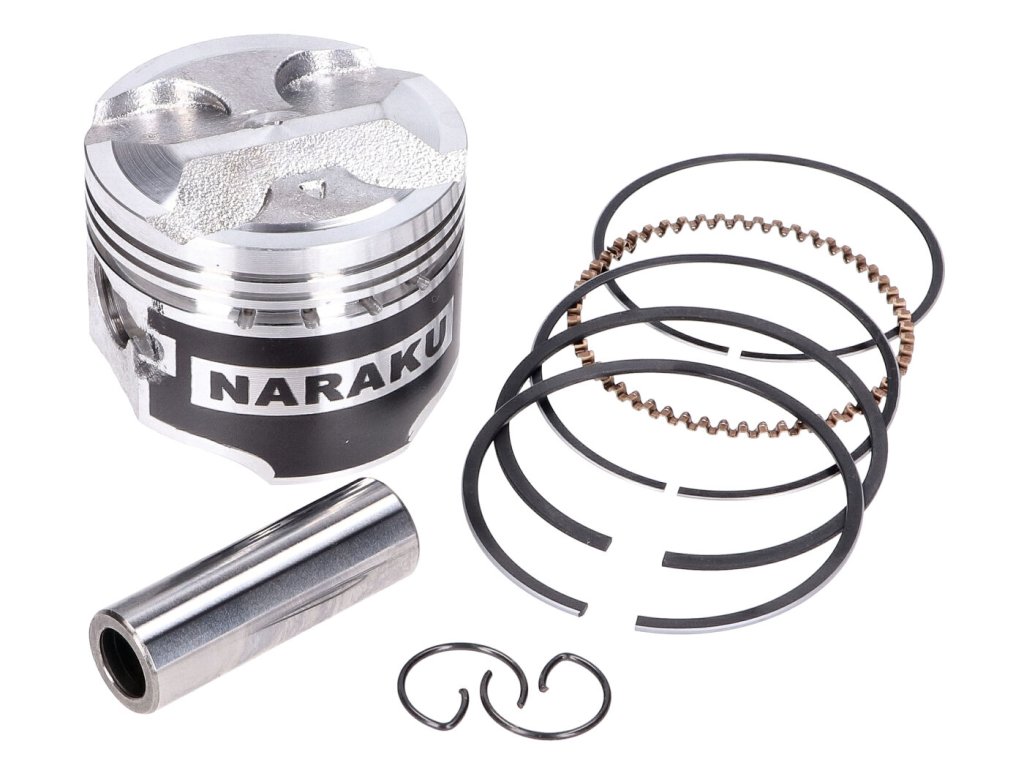 Náhradní vysoce kvalitní pístní sada Naraku V.2 79ccm, je vhodná pro válce Naraku o objemu 79ccm (vrtání 46,95mm). Tato pístní sada je vhodná pro motory Piaggio 4T 4V. Píst je potažen teflonovou vrstvou pro menší tření ve válci. Sada obsahuje píst s kroužky, pístní čep 13x39mm a pojistné kroužky. Kompresní výška pístu: 18,4mm.Doplňkové parametry