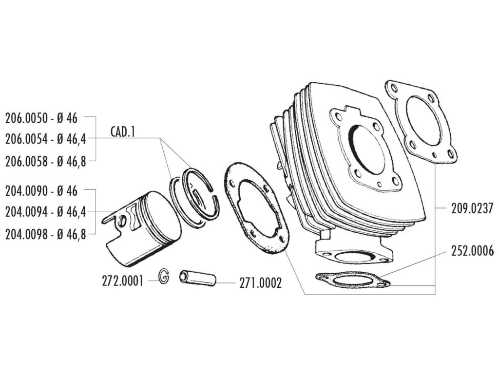 Pístní sada Polini 65ccm 46,8mm, CPI, Keeway euro2, Honda Wallaroo, Peugeot 103, 104, 105, Fox, GL 10, SPX 50
