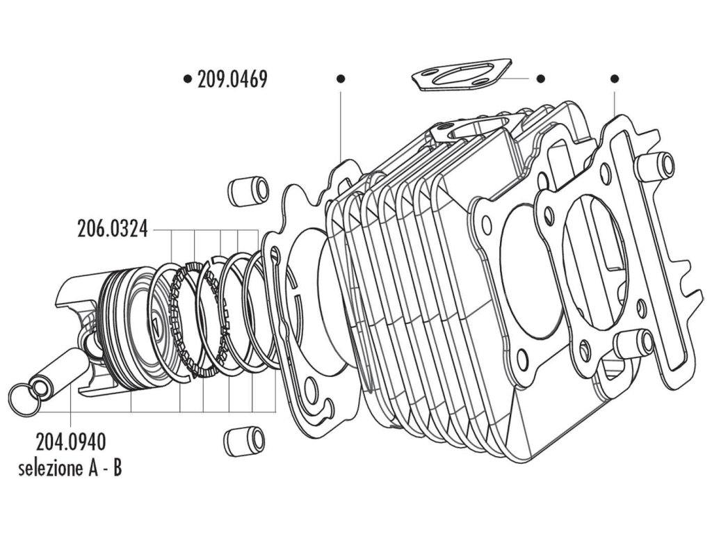 Pístní sada 79ccm Polini v top kvalitě. Průměr pístu je 49mm (B), tato pístní sada je vhodná pro motory Piaggio 50 4T 4V. V sadě je píst, pístní kroužky, pístní čep a segrovky.Doplňkové parametry