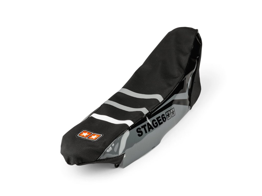 Potah sedla musí na jedné straně nabídnout dobrý grip, abyste ani při sportovní jízdě neklouzali a šetřili ruce, a na druhé straně také dobře vypadat. Protiskluzové potahy sedla Stage6 splňují obojí: poskytují vynikající přilnavost díky drsnému povrchovému materiálu a třem barevně odděleným příčným pruhům, a zároveň sportovní offroad racing vzhled s vinylovými bočními díly s logem Stage6, které navazují na výrazné linie Stage6 sady samolepek. Potahy jsou střiženy na sedlo příslušného modelu, takže perfektně pasují. Zároveň jsou odolné a dlouhotrvající.
