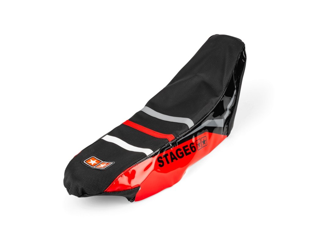 Vysoce kvalitní potah sedla Stage6 s maximálním gripem a sportovním vzhledem. Přilnavý materiál, barevné pruhy, boční díly s logem a dlouhá životnost.