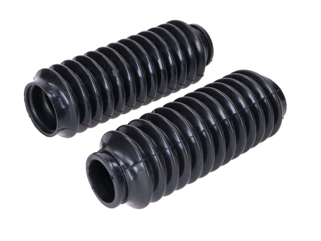 Černé harmonikové manžety pro Kreidler Florett RS, RMC, LF, LH a RM chrání trubky vidlice, prodlužují životnost těsnění a podvozku a snadno se montují.