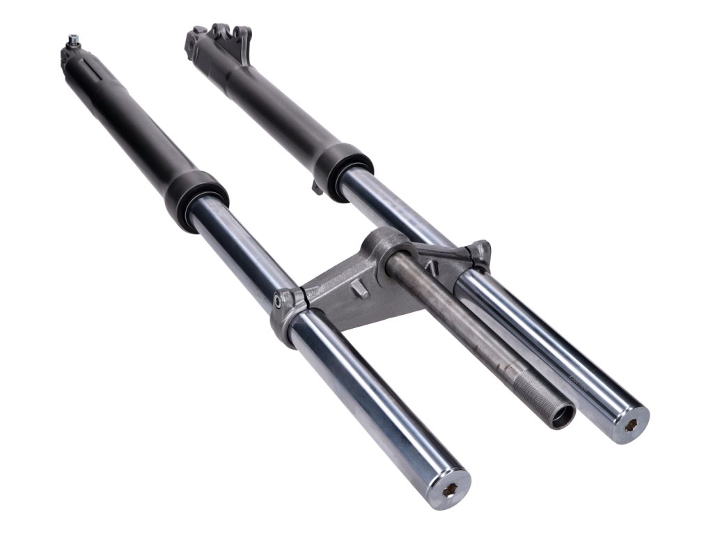 Nová sportovní vidlice od EBR s hliníkovými brýlemi a kluzákem ve špičkové kvalitě. Vhodná pro Tomos Revival a Streetmate.