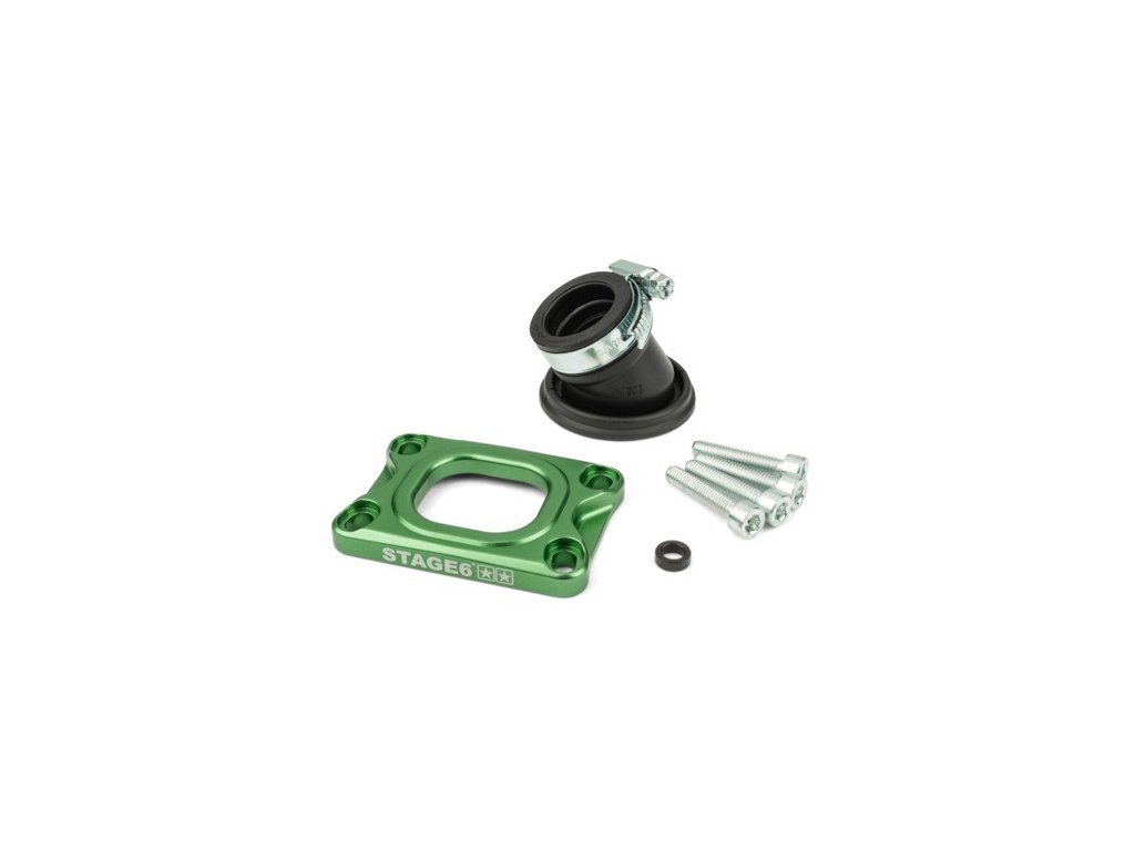 360° příruba Stage6 pro AM6 a Derbi zlepšuje výkon a umožní flexibilní natočení karburátoru. Kvalitní zpracování, těsnost a snadná montáž.