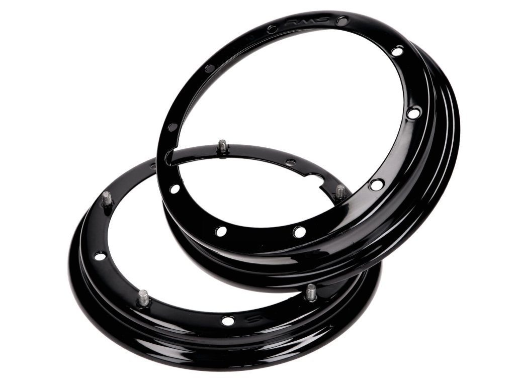 Černě lakovaný otevřený ocelový ráfek 2.10-10 palců s vnějším průměrem 278 mm vhodný pro Vespa P, PK, PX, LML Star a mnoho dalších.